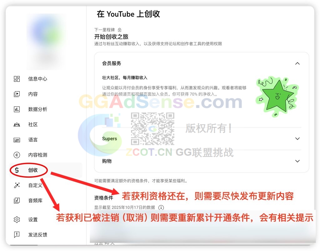 收到这个提示并不代表YPP获利资格已被取消,具体需要在频道获利页面查看,如果获利功能还在,则立即发布新的内容即可,如果不在,需要重新累计播放时长和粉丝标准,然后重新申请获利审核。