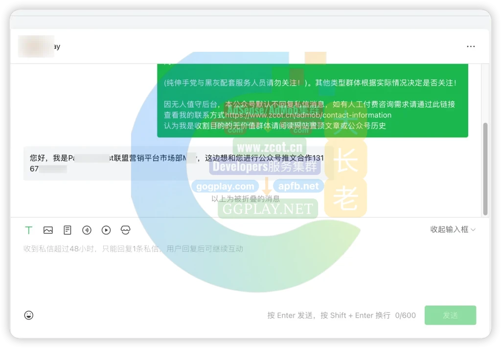 最近也有人通过大长老微信公众号私信,联系长老“带货”,如下图所示。