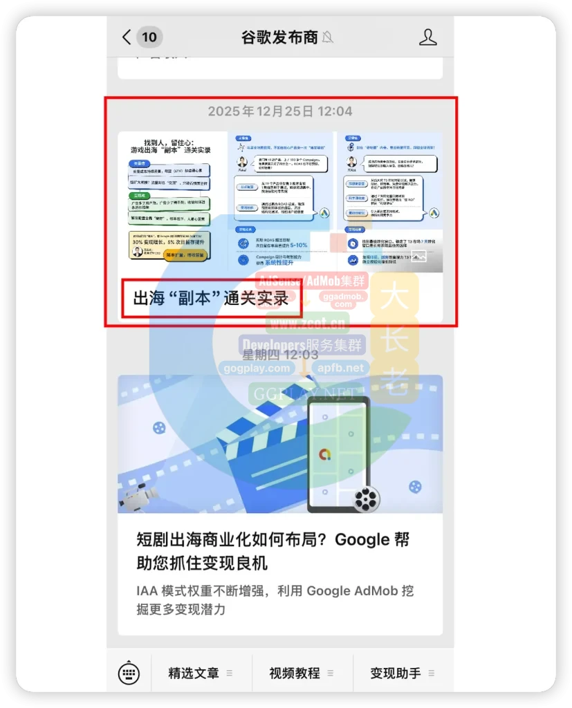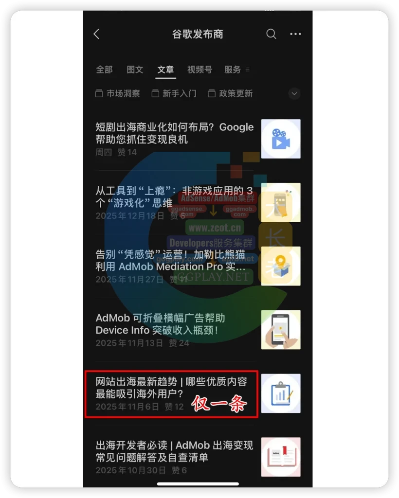 我们可以看一下谷歌发布商公众号的历史文章列表,几乎十篇内容最多找出一篇关于网站(纯AdSense)的信息,最近五年谷歌官方的公开活动、内容几乎90%的主角是APP(AdMob)、YouTube、AdS、和其他。